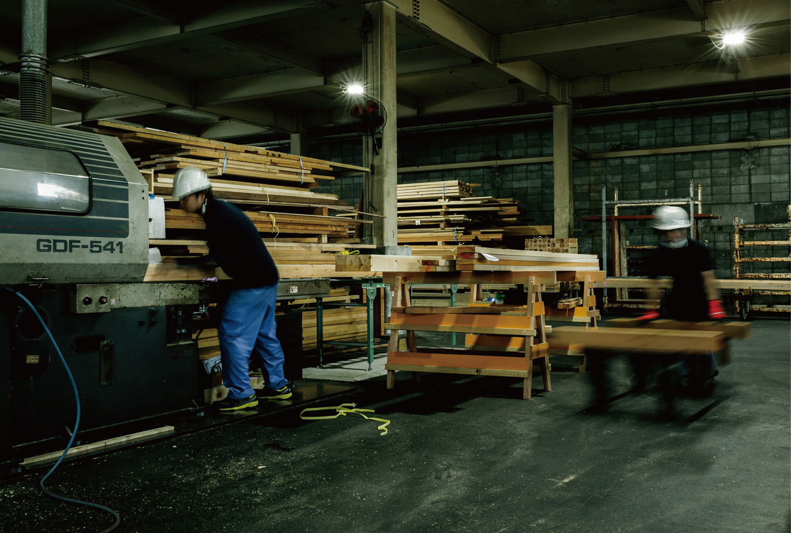 住宅建設に必要な加工を職人が丹精込めて加工を行っております。