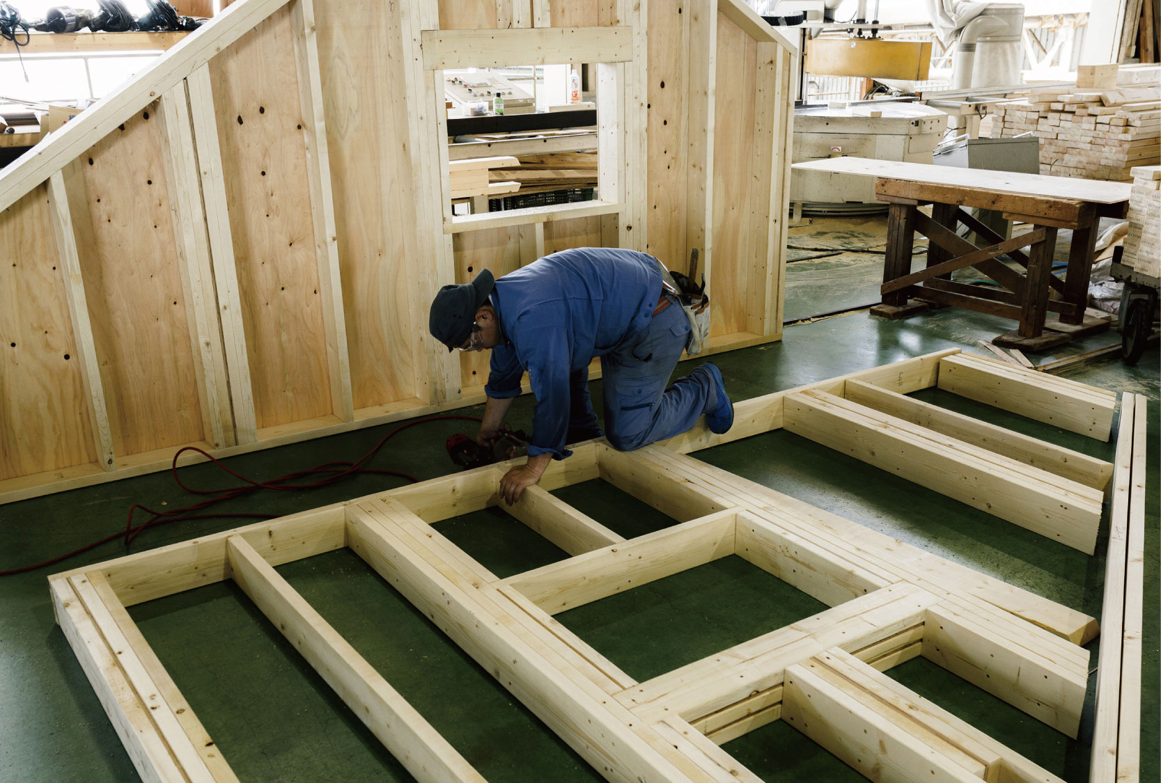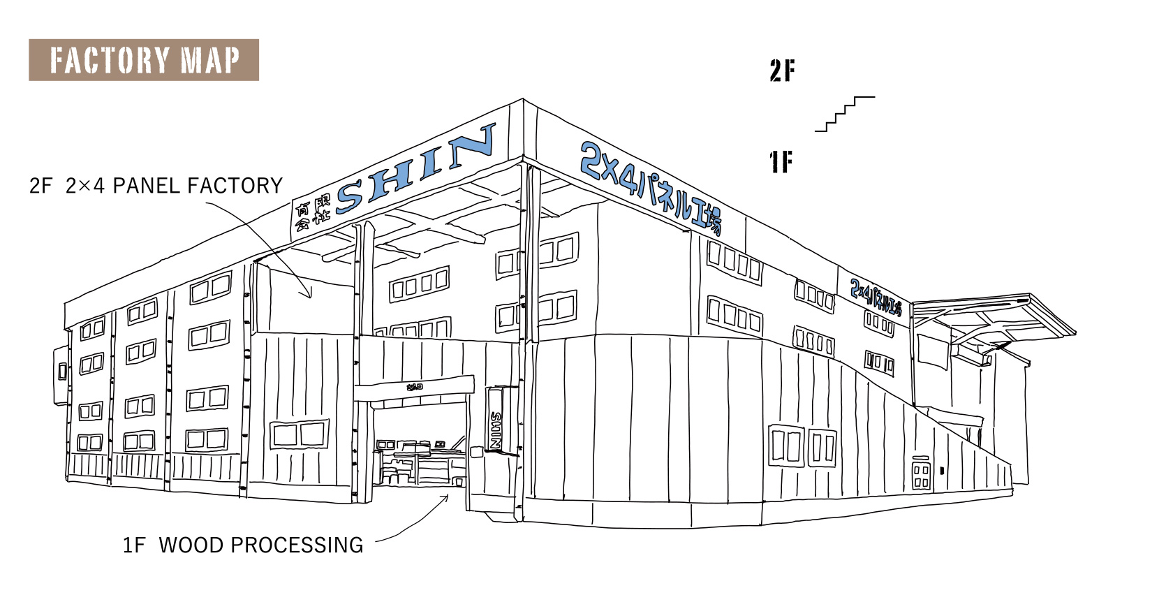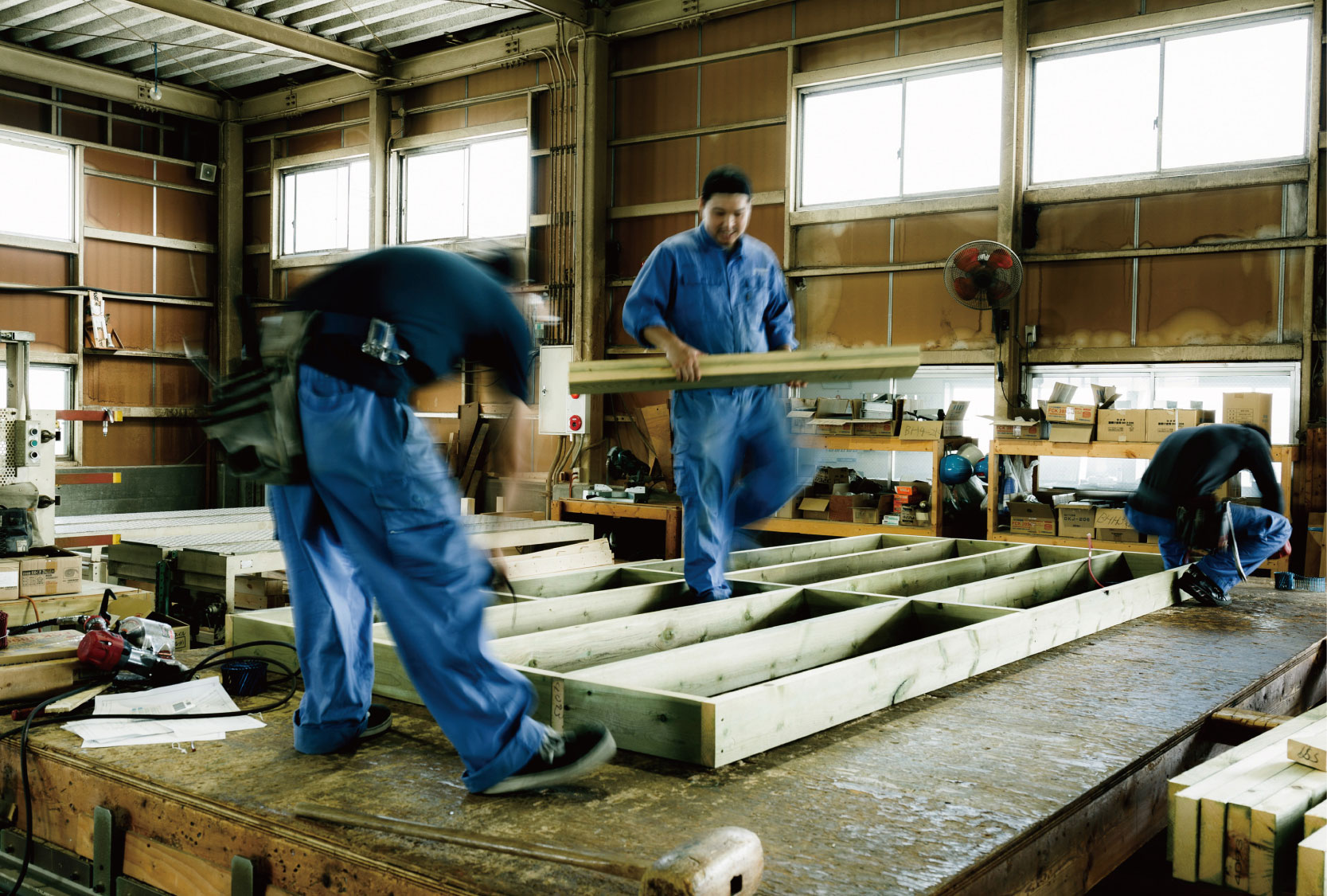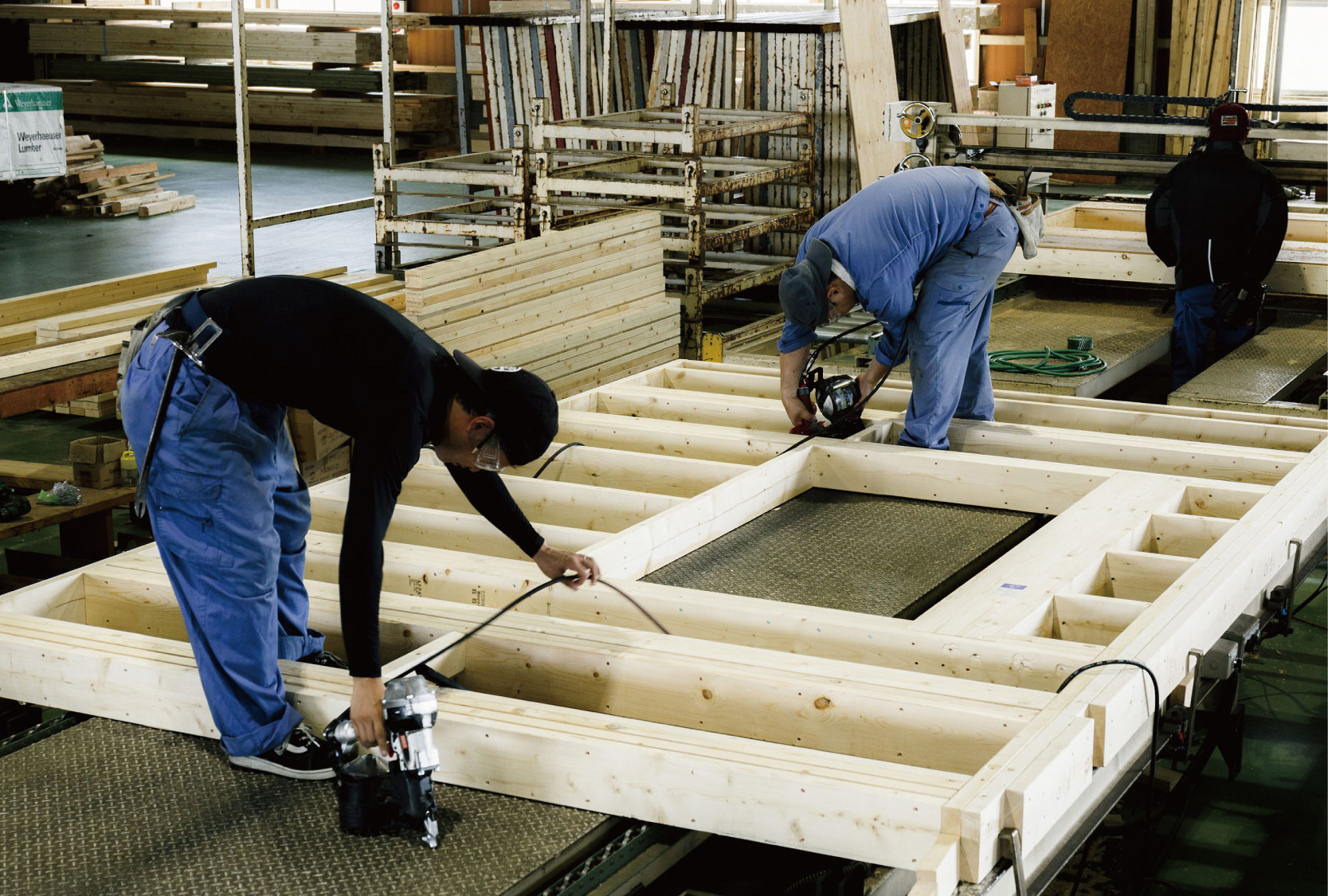 戸建住宅を主として現場及びユーザー様に喜んでいただける2×4パネルの設計、制作、組立までワンフロアの工場内で行っています。